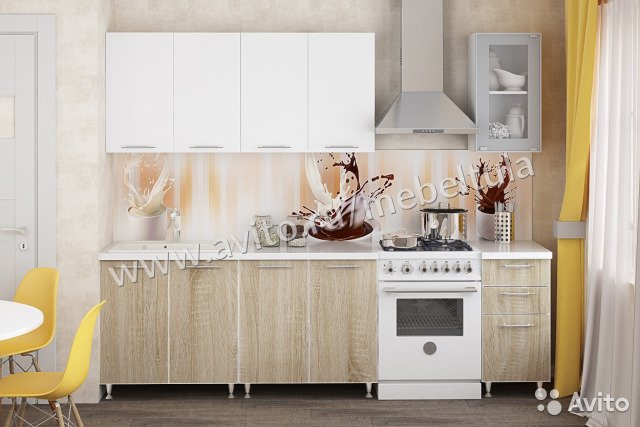 Кухонный гарнитур Радуга 2м ЛДСП белый/сонома